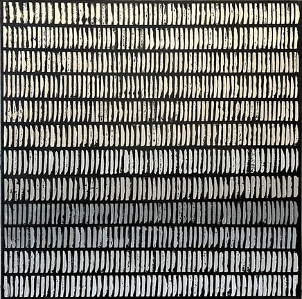 Gray/Taupe Mini Stripes is an original textured abstract painting. The modernist design explores a rich range of gray and taupe colors.
